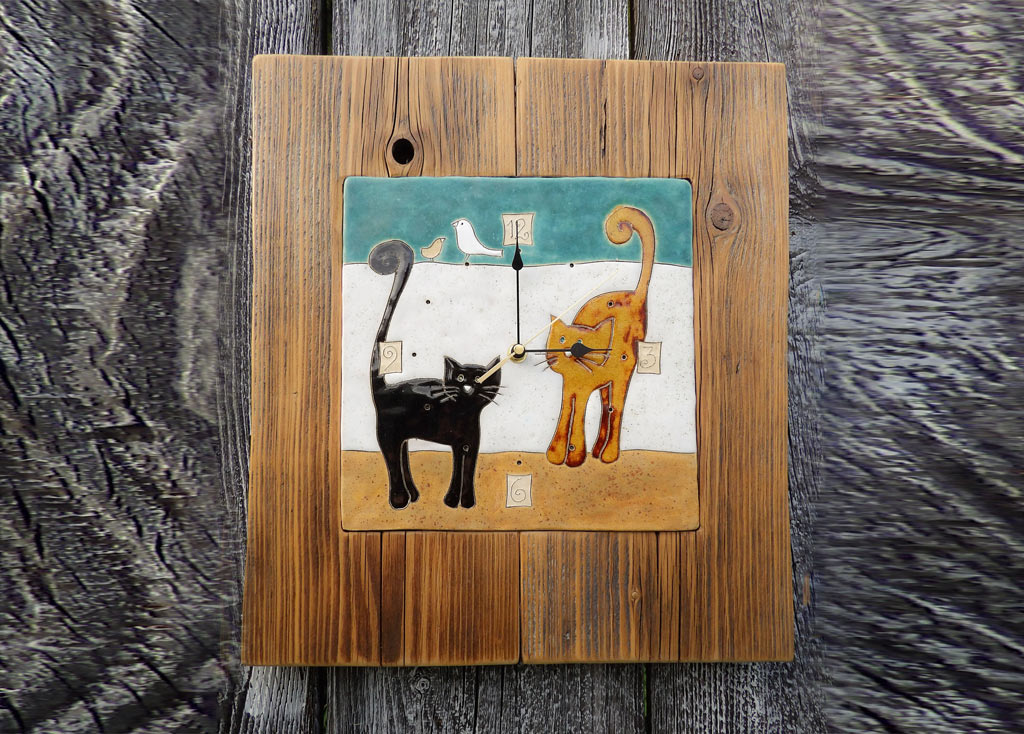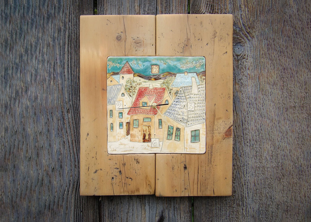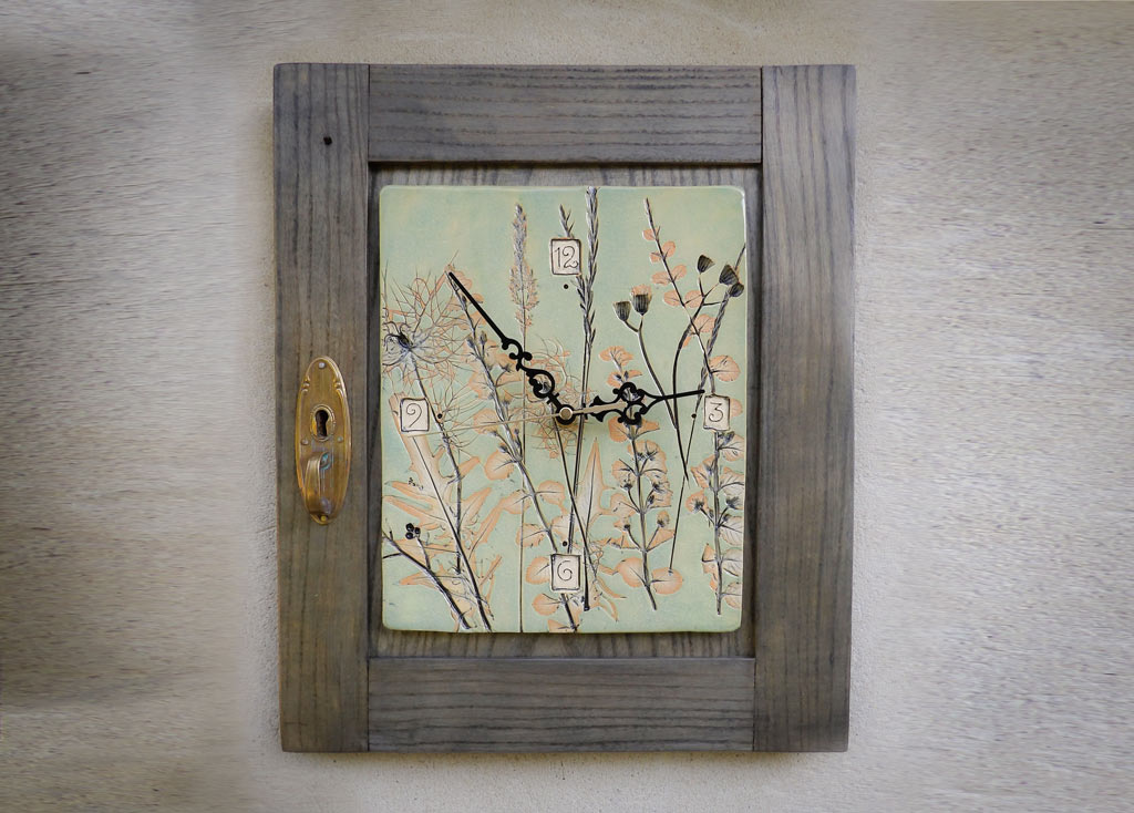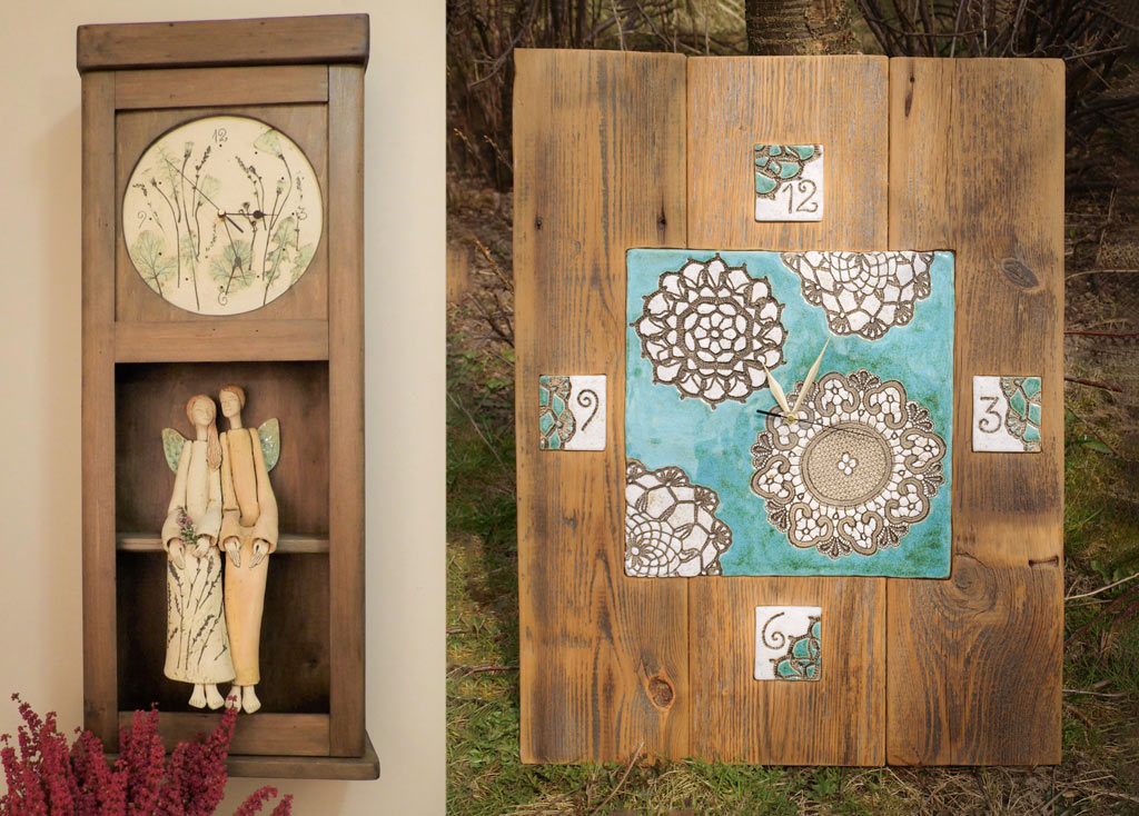 Zegarem może być kafel ceramiczny, oprawiony w stare dechy. Czasami zegar odnajdzie się w drzwiczkach od kredensu, lub w starej obudowie zegara – wtedy może być uzupełniony parą ceramiczną, która wypełni lukę po nieobecnym mechanizmie. Są w pełni użytkowe, a dodatkowo mogą stanowić niebanalną ozdobę wnętrza.